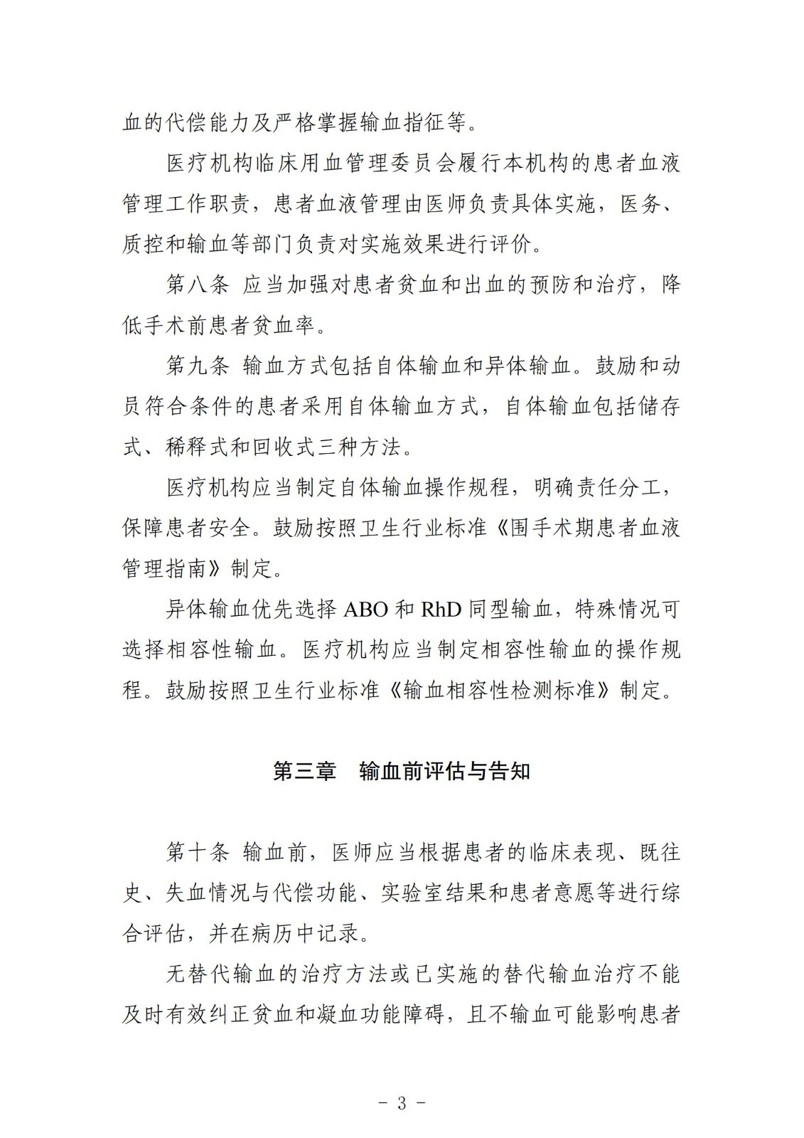 各省级卫生健康行政部门应当组织辖区内医疗机构积极学习《技术规范》,坚持以患者为中心,优化临床用血服务,建立健全覆盖临床用血全流程的质量管理体系。同时,加强节约用血管理,提升血液使用效率,大力推广自体输血等血液保护技术。