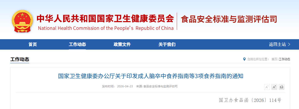 国家卫生健康委办公厅关于印发成人脑卒中食养指南等3项食养指南的通知